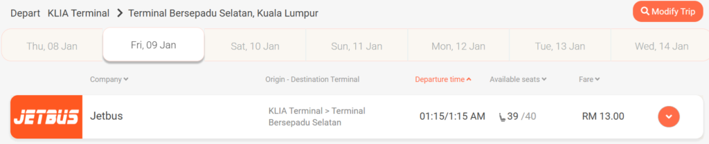 KLIA to Bus Station TBS