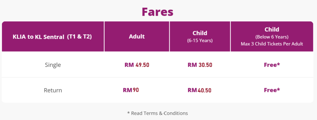 KLIA Transit follows the same route but stops at Salak Tinggi, Putrajaya, Bandar Tasik Selatan (TBS), and other suburban stations — useful if you’re staying outside the city center.