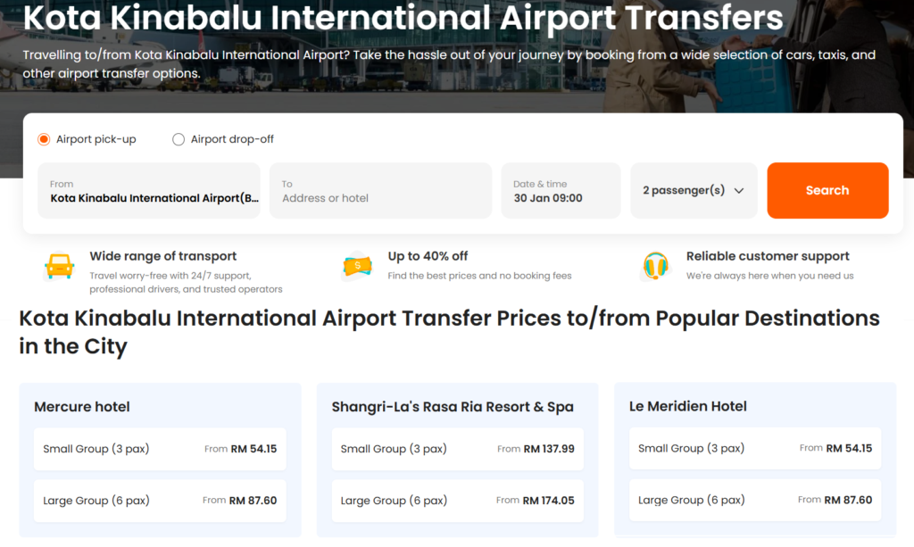 Arriving at Kota Kinabalu International Airport (BKI) and need a ride? The Airport Taxi service makes it simple. Just head to the counter in the arrival hall and book a car straight to your destination — no stress, no surprises. You can pick the vehicle that suits you best, whether it’s a sedan for solo travel, an MPV for families, or an SUV if you want extra space. Fares are fixed by distance and zone, so you’ll know exactly what you’re paying before you get in.