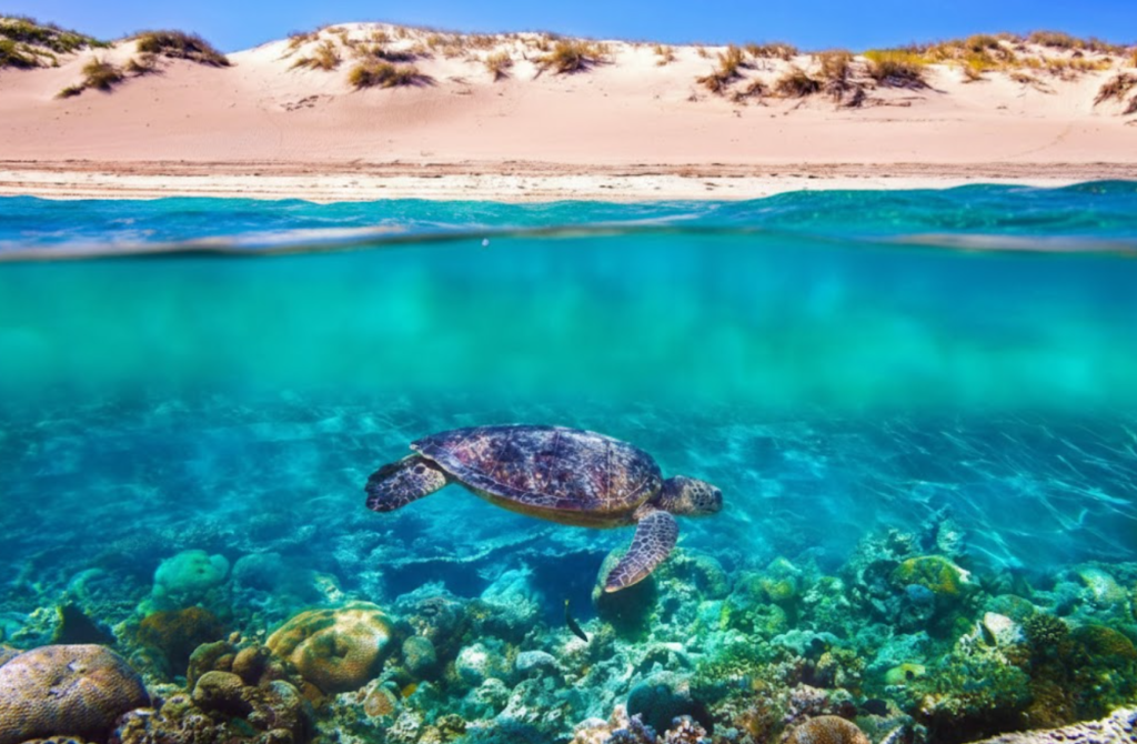 Snorkelling is the soul of Ningaloo, with sites like Turquoise Bay and Bill’s Bay offering easy access to coral gardens just metres from shore. Oyster Stacks, however, is a reminder of how delicate this ecosystem is — the coral lies close to the surface, and snorkelling is only suitable at high tide. Arriving at sunrise, when the water is calm and the light soft, reveals a world of colour just beneath the waves. Osprey Bay is another treasure, where turtles glide gracefully through the shallows, a sight that feels timeless and unforgettable.