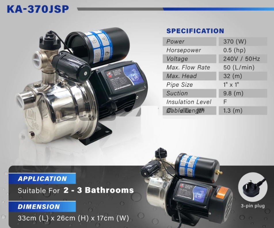 - KA-370JSP: Suitable for 2–3 bathrooms