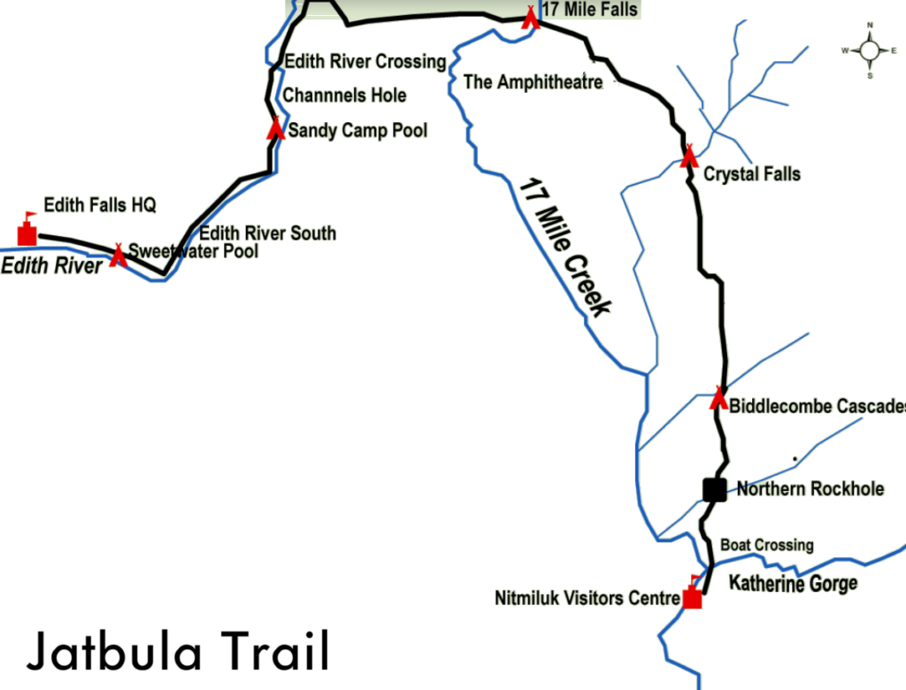 - Day Six (optional): Sandy Camp to Sweetwater Pool, then Sweetwater Pool to Edith Falls.