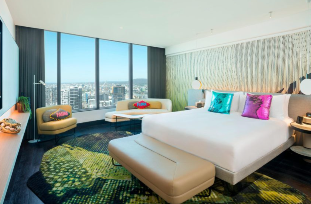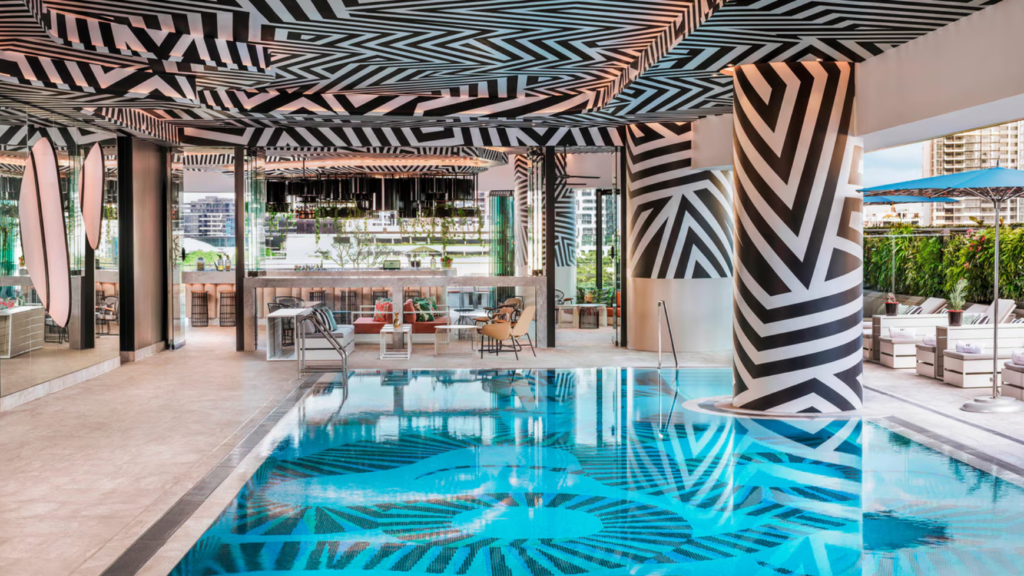 W Brisbane rises above the river with a swagger that feels both playful and polished — a hotel that doesn’t just host you, but sweeps you into its rhythm. From the moment you step inside, the city’s subtropical pulse is stitched into every detail: reed‑shaped fixtures echoing the river, bold stripes splashing across the pool deck, and suites that unfold like stage sets, each corner a vignette of comfort and spectacle.